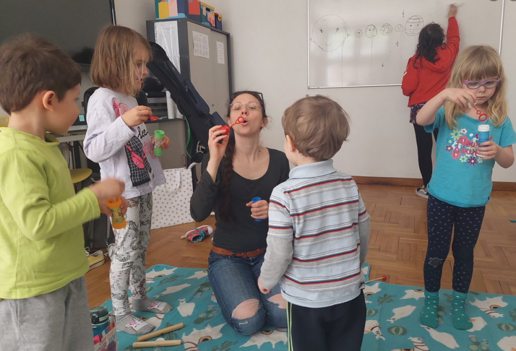 W Szkoła Polska W Budapeszcie uczyliśmy się dziś kosmologii, bańkologii, śpiewania, akompaniowania, w rytm tupania i pokazywania. Były tańce i swawole, jak to na dysce w szkole 😉