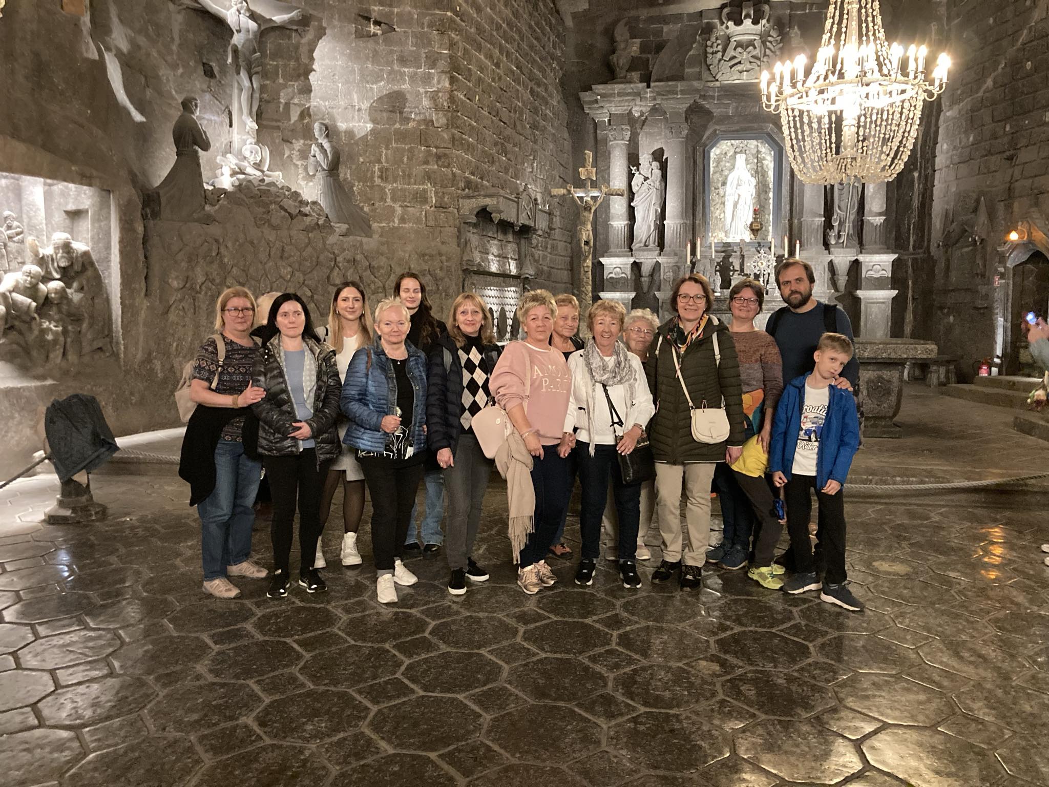 Podziwialiśmy podziemne krajobrazy: solankowe jeziora i przepiękne podziemne komory, w tym Kaplicę św. Kingi.